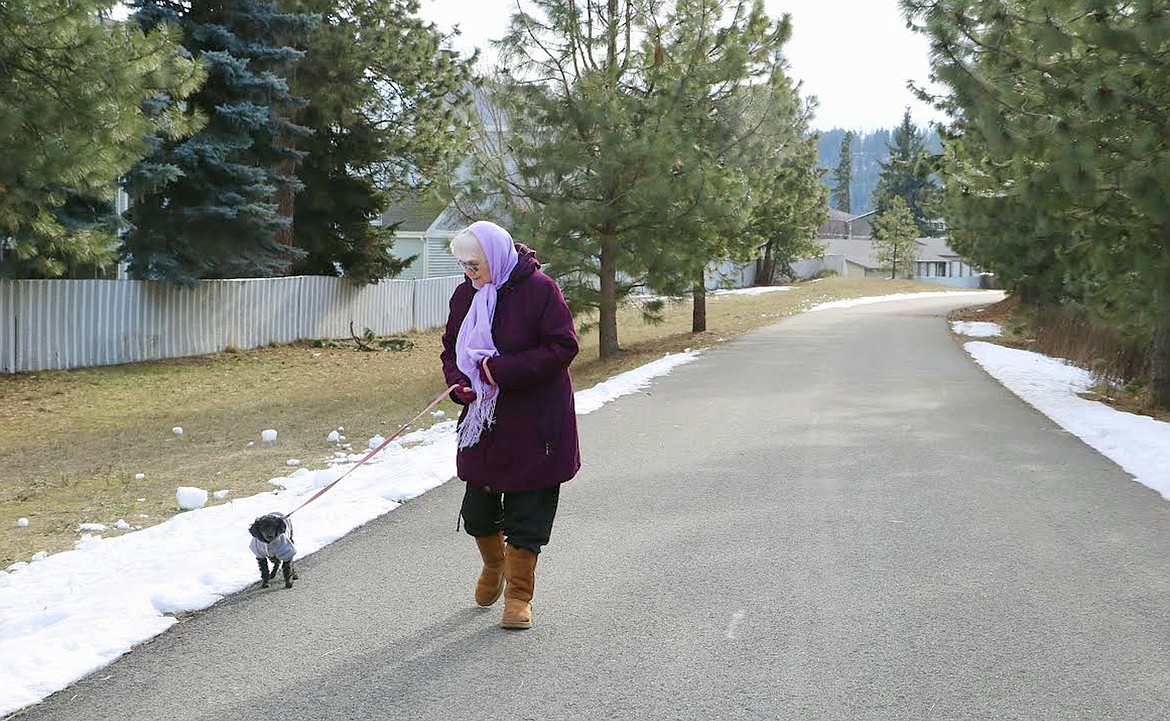 Rosemary Snedeger of Coeur d'Alene and her poodle, Lily, took a walk on the trail Wednesday.