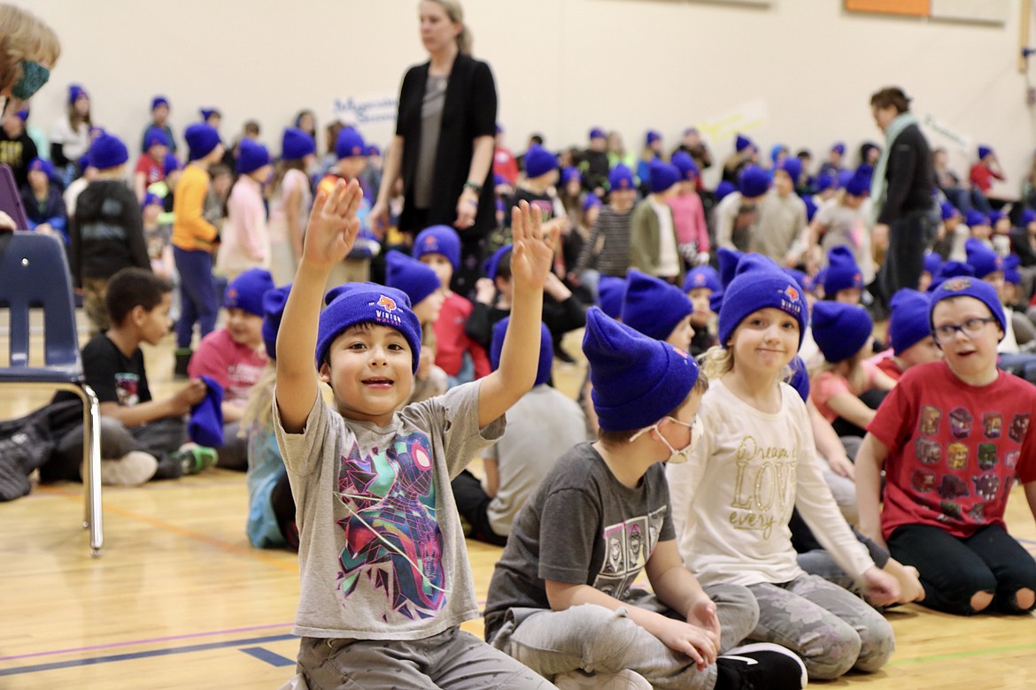 Even while competing against each other, the school was united in spirit, celebrating their new blue beanies which included a rebranding of the Winton Wolves logo. The beanies were donated by the PTA.