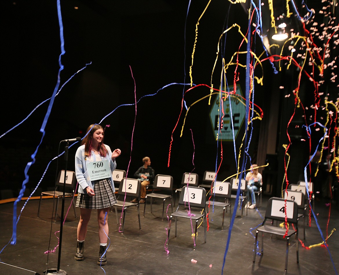 But it was Emerson's correct spelling of the word "frugal" during the North Idaho Spelling Bee in Schuler Performing Arts Center on Saturday morning that triggered the confetti cannon and earned her the title of champion.