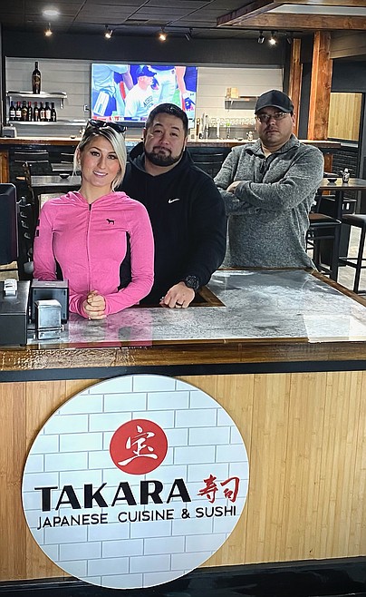 With "takara" meaning "treasure" in Japanese, owner Kenta Nishimori and managers Shiree Nishimori and Joshua Williams offer lunch from 11 a.m. to 2 p.m. and dinner from 4-9 p.m. Included are sushi, beer, wine and sake.