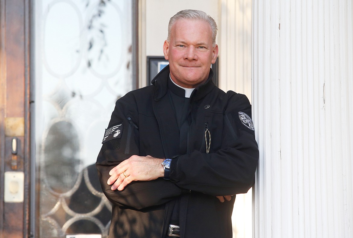 There are parallels between his life as a priest and his experiences as a young Marine officer.