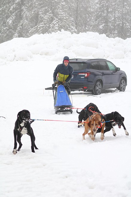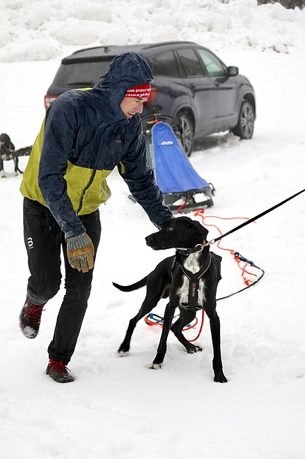 Musher Dan Hanks of Coeur d’Alene said it’s normal for the dogs to get all excited, then calm down when he gives them the go-ahead to start pulling the sled.