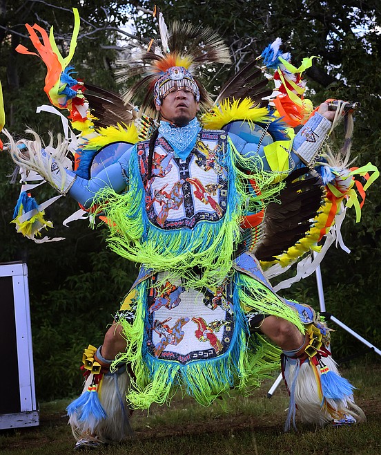 Camdon Croff performs with the Blackfeet Singers and Dancers at Rising Sun Wednesday, June 29 as part of Glacier National Park's Native America Speaks program. (Jeremy Weber/Daily Inter Lake)