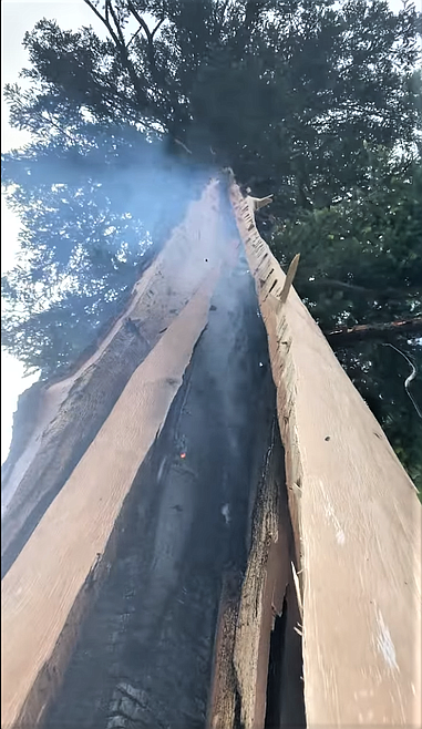 The first occurred over the weekend of July 2-3 when a bolt struck a tree in the Burke Canyon area of Wallace. While fire damage was relegated to the affected tree, due to a quick citizen report and response by Shoshone County Fire District No. 1, the incident did make for a fascinating sight. Video footage taken by SCFD No. 1 and shared on its Facebook page showed a towering tree essentially split and hollowed out by fire. Both SCFD No.1 and IDL crews were on scene of the incident.