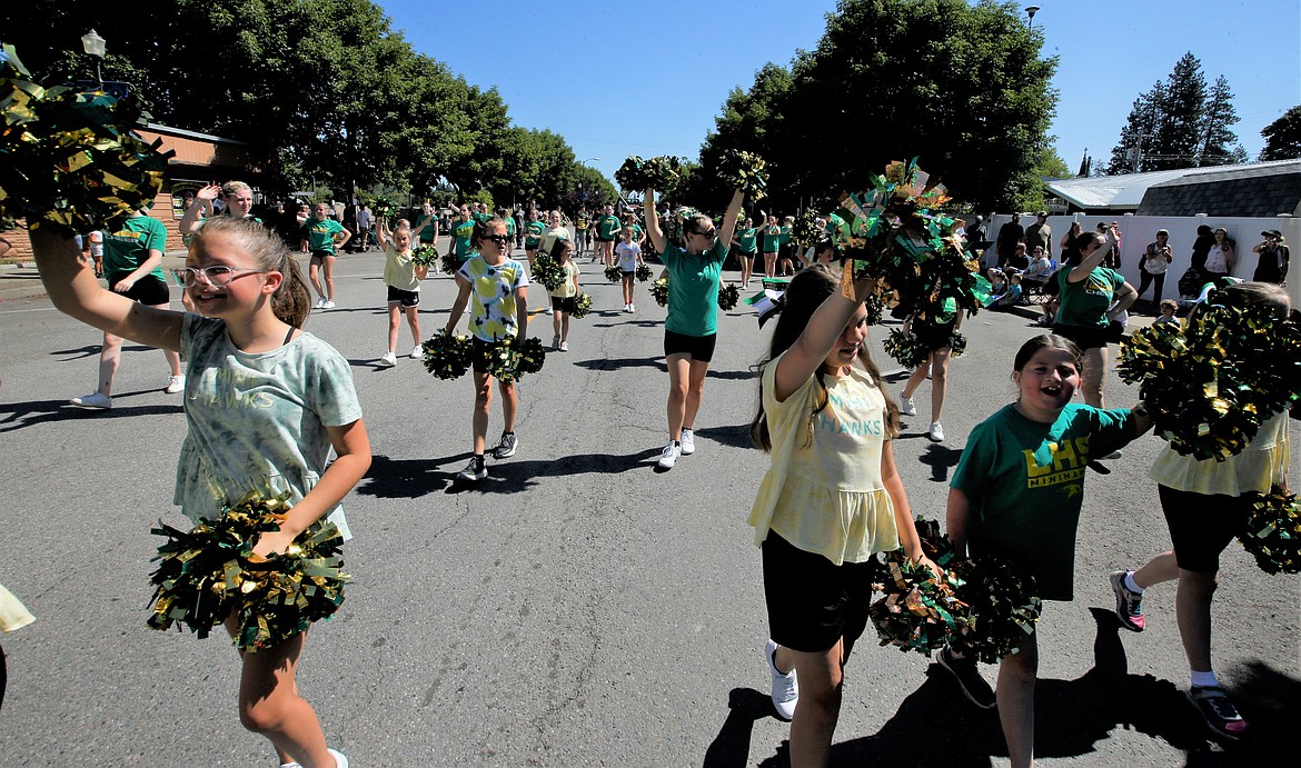 With beautiful blue skies and sunshine, the setting was perfect as cheerleaders, horses, musical groups, a logging truck, politicians and even a cardboard cutout of Jesus made their way along the half-mile route.