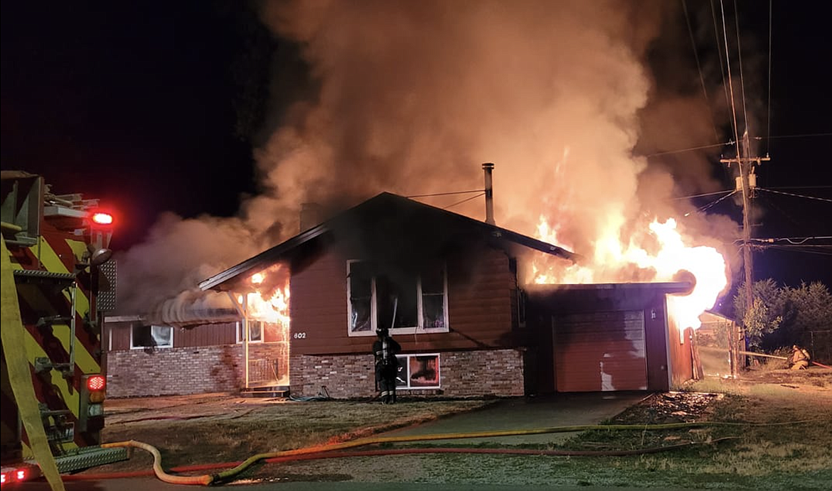 Shoshone County Fire District No. 2 reports that at 1:13 a.m., crews responded to a reported structure fire in the 600 block of South 1st Street. Upon arrival at the scene, firefighters found heavy involvement in the backyard and at the back of the unoccupied home. While they were able to stop the spread of the flames to a neighboring home, the fire quickly made its way into the rest of the original structure.