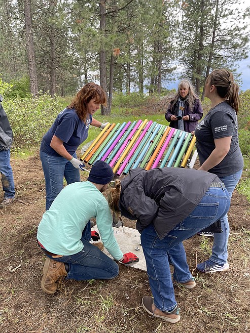 COEUR d’ALENE - The first sensory pod in the Children’s Village sensory park was installed Friday with the help of about 30 volunteers from Gizmo-CDA, Mountain West Bank and the Coeur d’Alene Rotary.
