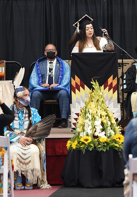 The ceremony concluded with a prayer led by Shirley Trahan and then the graduates exited to the drumming and song by Yamncut while waving to bleachers full of family and friends.