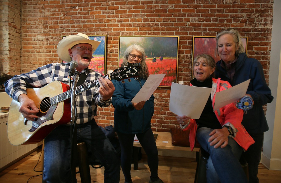 Inside the Art Spirit, out of the rain, Gil Ward sang lyrics to a song he wrote just for this year's Street Music Week.