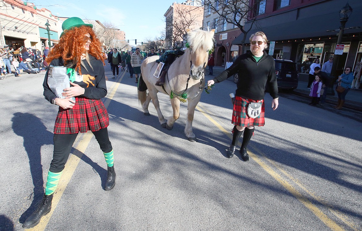Peter and Tyree Riggs led a riderless Norwegian Fjord horse named Jostein through the parade in honor of Darwin Brown, who died last year. He was a longtime friend and supporter of All Things Irish on Sherman Avenue owned by Craig and Ilene Moss, who help organize the parade.