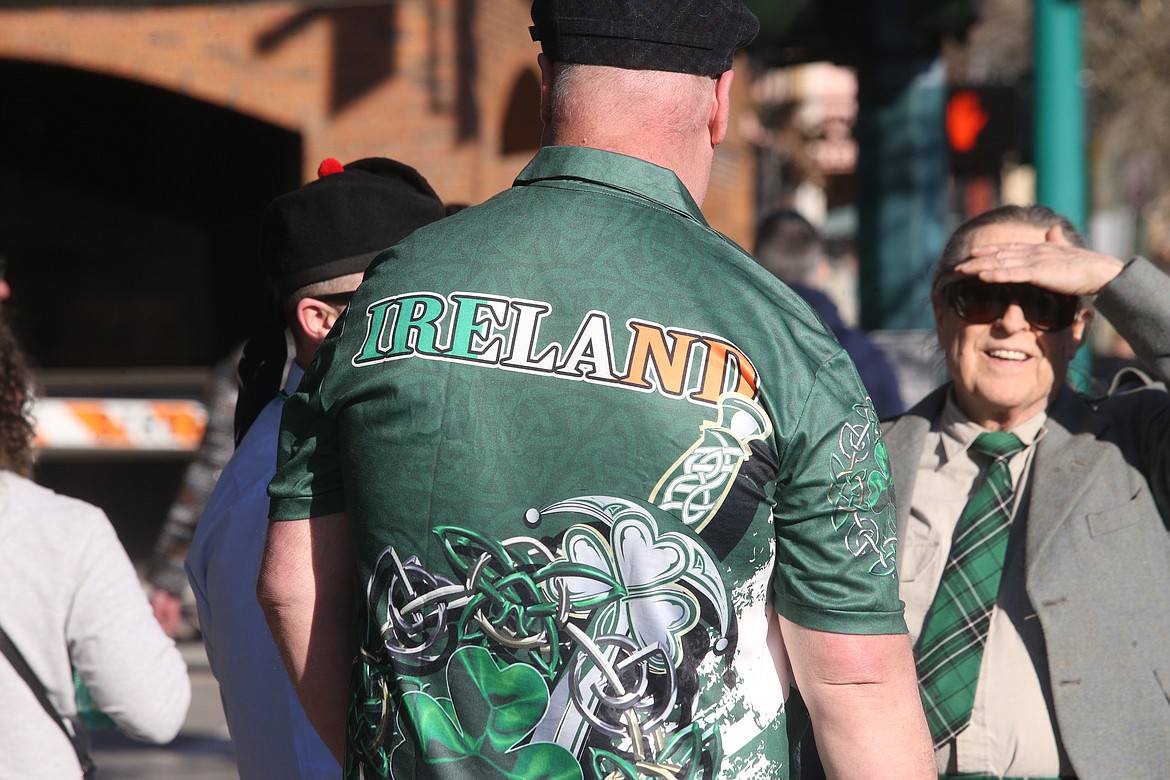 Thousands of people lined downtown Sherman Avenue, many also sporting green caps and T-shirts that said “Lepurrchaun,” “Feeling Lucky,” and “Kiss Me, I’m Irish.”
