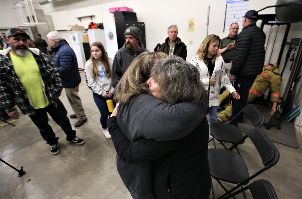There were still many people in the Hauser Lake Fire Station, but the women stood together, seemingly alone.