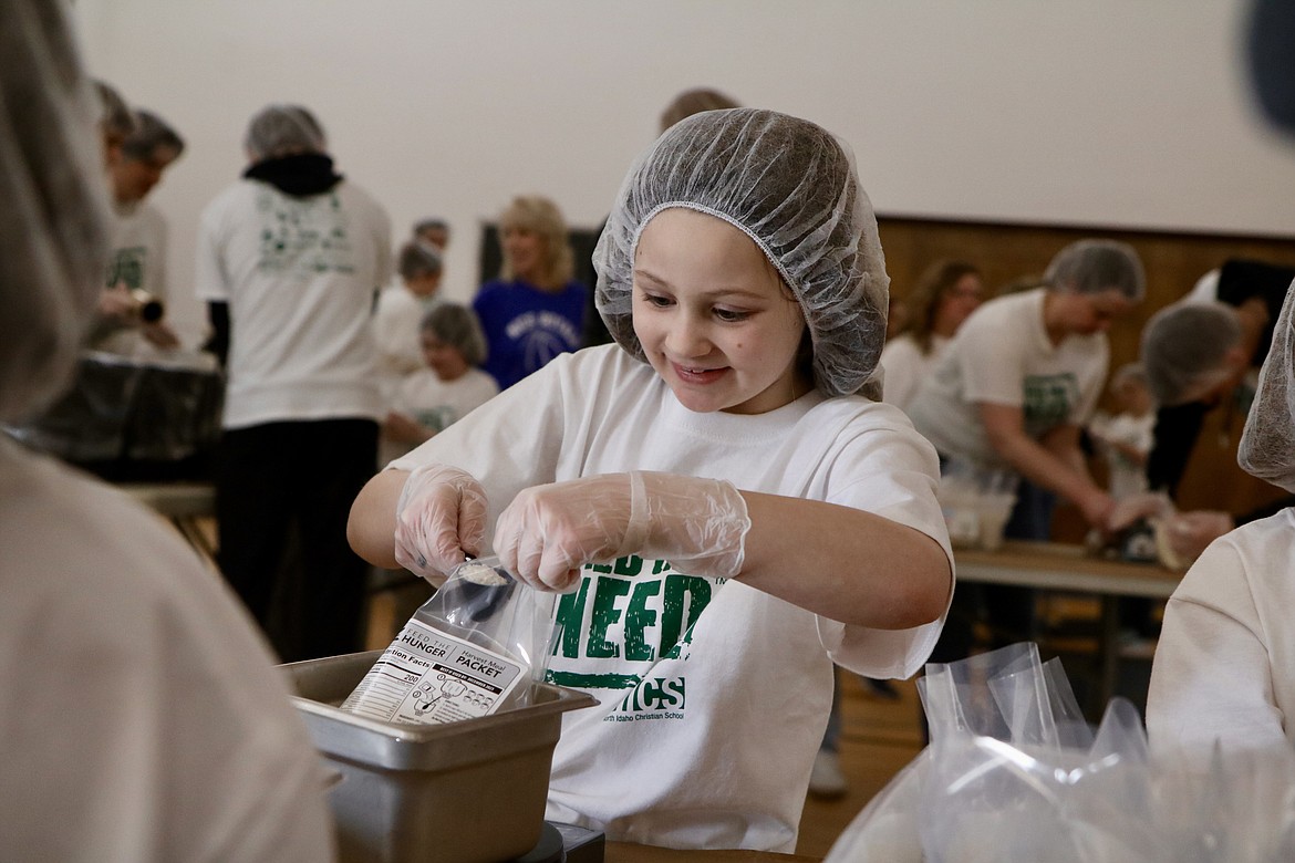 The nearly 250 kids at North Idaho Christian School revisited their packing skills for their annual meal packing party last week.