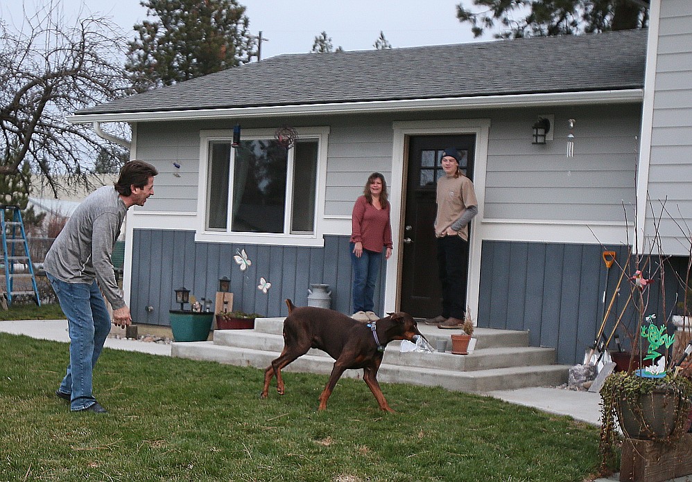While infamous for stashing the newspaper in Trace's bed, Bu is locally famous for his dedication to newspaper retrieval. The Valentes live near Post Falls Middle School, where students walk by their house and enjoy seeing Bu in action.