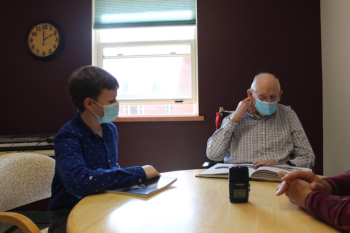 Merle Nimbar flips through a book of old war planes at the Montana Veterans Home in Columbia Falls. Even though it is sometimes difficult for him to recount memories from his long and colorful life, he doesn’t skip a beat when he flips to an illustration of an F-80 fighter jet.