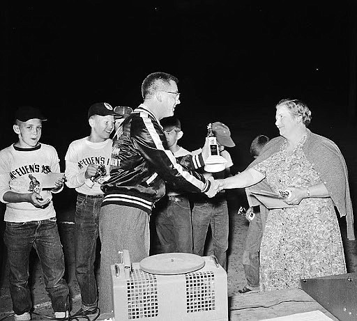 Her generosity extended to struggling families by extending credit in order to buy groceries. Mae also provided free hot dogs and pop for team members and game attendees. She won state and national awards for her generosity.