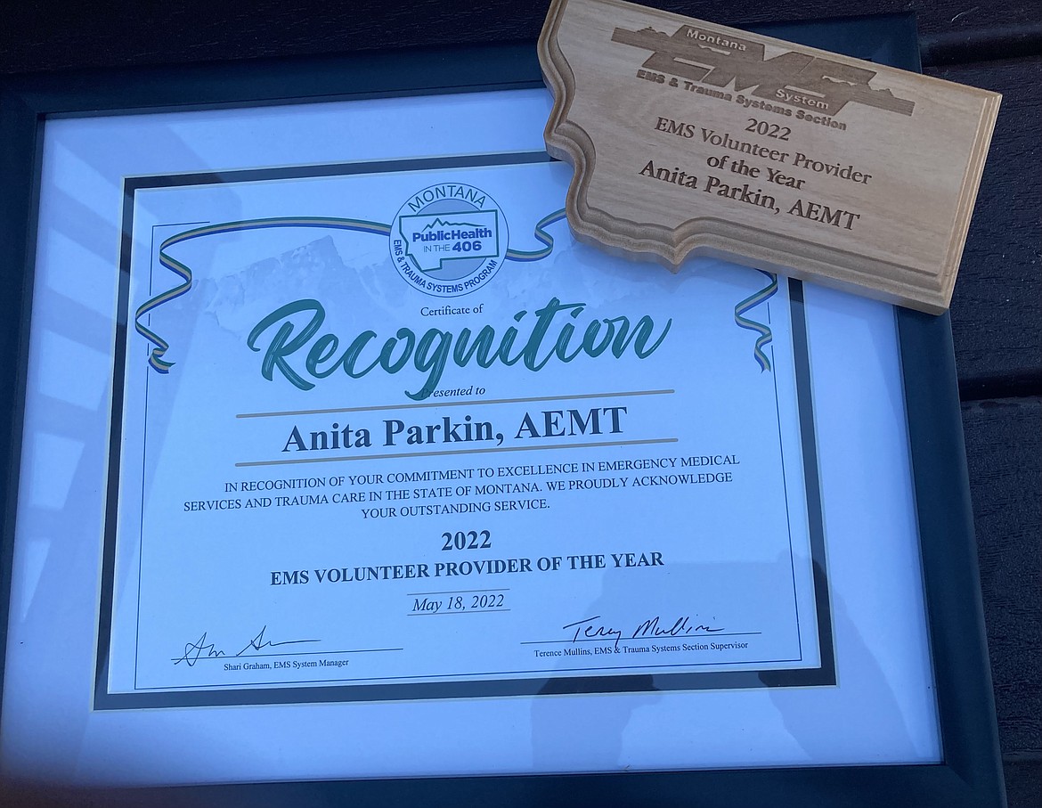 “It’s a pretty cool honor and I was very surprised because there are so many people and it’s ‘the’ award for the year for a volunteer EMT (in Montana).”