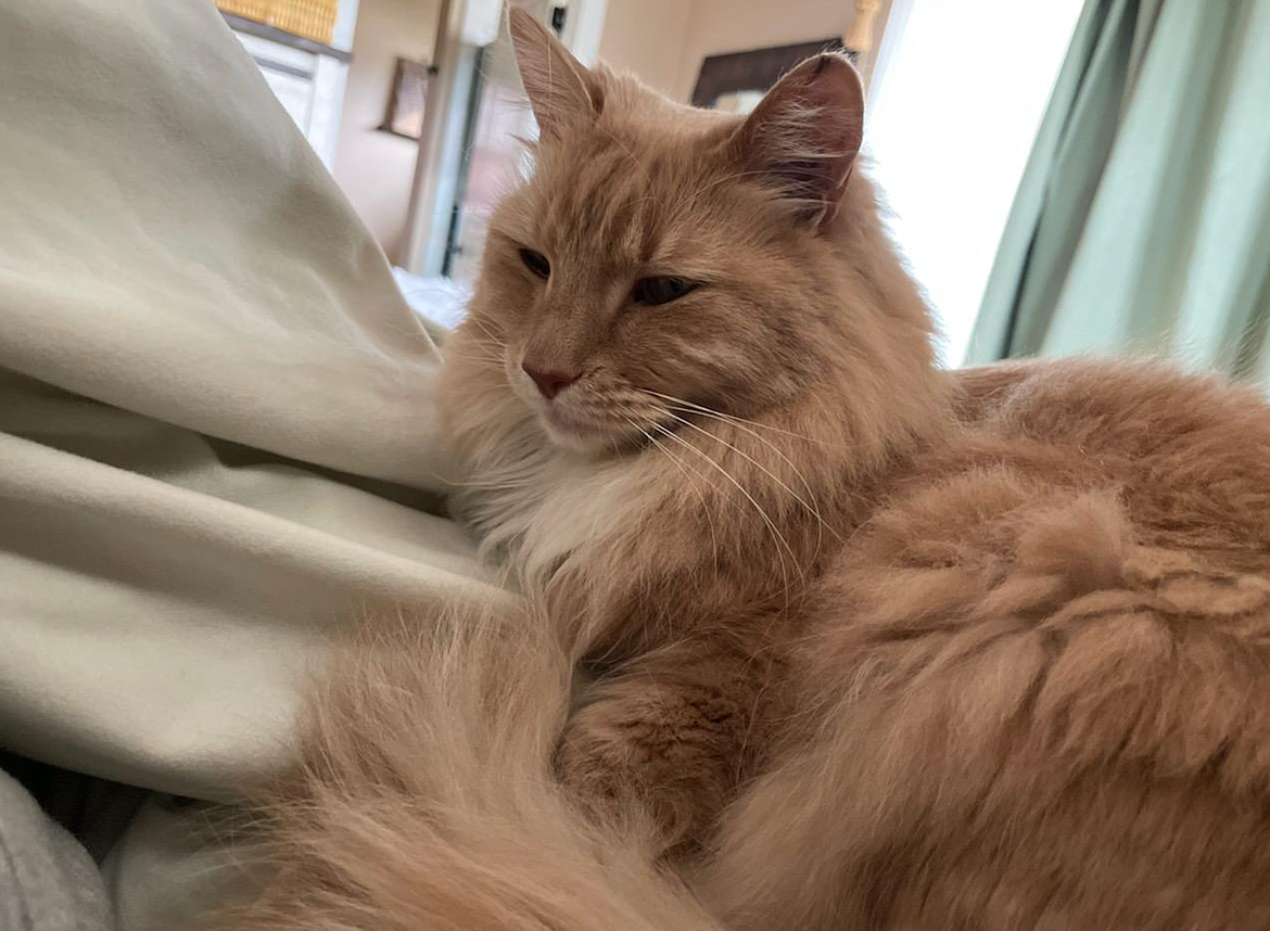 "He is a wanderer but never overnight, always napping at least twice a day outside the house and going out and roaming a block or so," she said. "He gets spooked with loud trucks and cars. He would not be the type to come up to anybody."