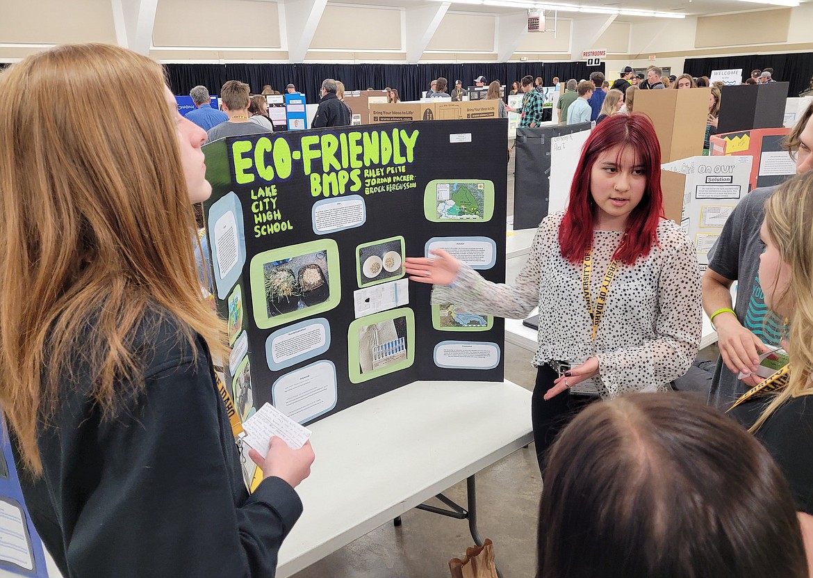 Students select water-related topics with local relevance, such as stormwater pollution, water quality of lakes and streams, snowpack measurements or impacts to the aquifer. They then present their work to a panel of judges.