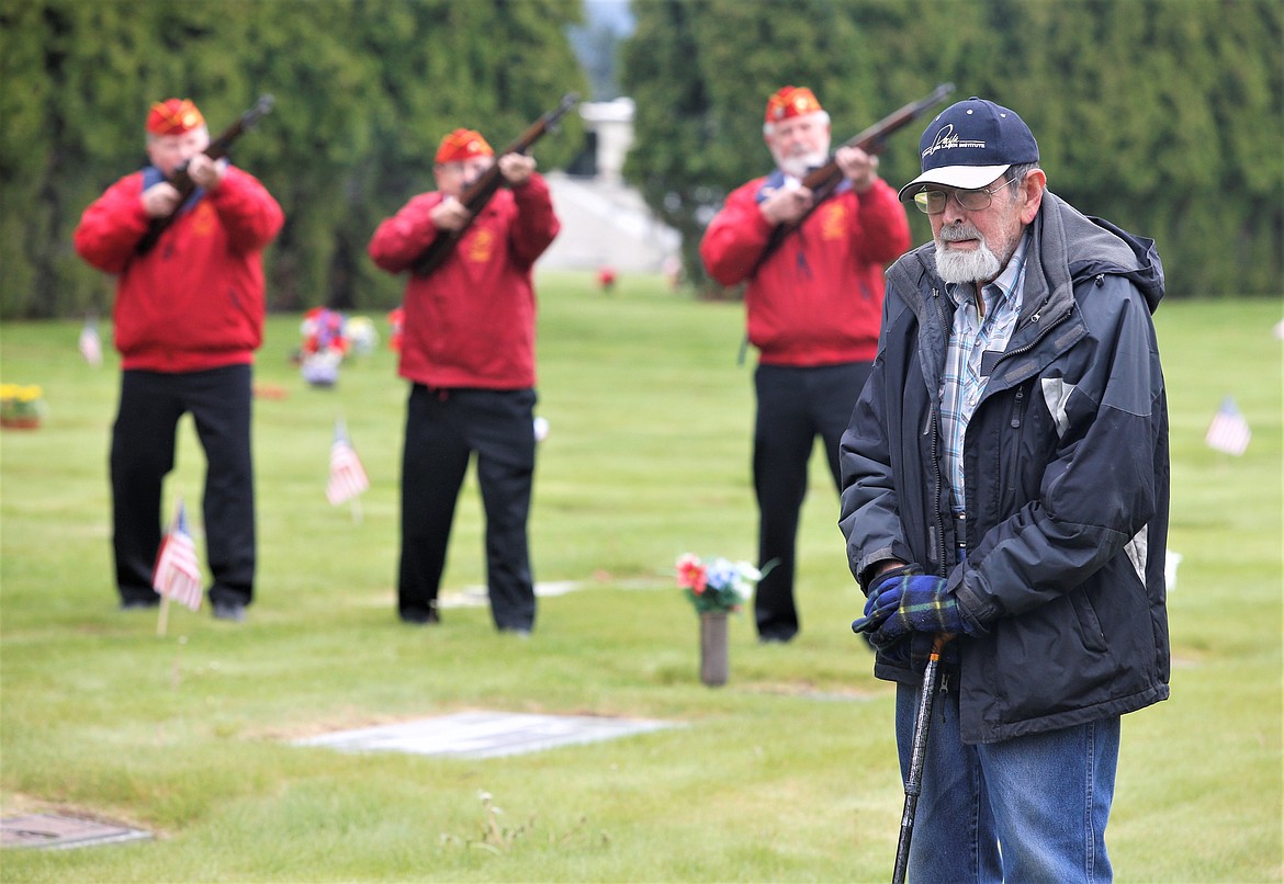 COEUR d’ALENE — Phil Willadsen doesn’t usually attend Memorial Day ceremonies, but despite the cold and cloudy conditions Monday, he was there, leaning on his cane at Coeur d’Alene Memorial Gardens.