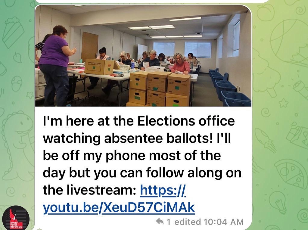 Erin Barnard, a blogger who operates the Kootenai County Spectator website, posted on Telegram that she was watching county staff sort absentee ballots Monday morning.