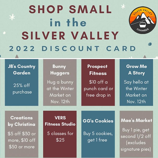 The Shop Local Coupon Card will be available this Saturday, Nov. 12, at the Silver Valley Chamber’s Winter Market at Kellogg Middle School from 10 a.m. to 2 p.m.