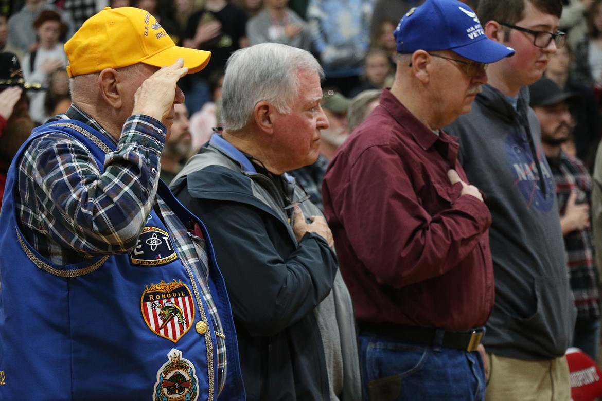In introducing the veterans as they walked into the gymnasium, escorted in honor by members of the Sandpoint High School Student Council, Alex Manning said it was a privilege to welcome them to the school.