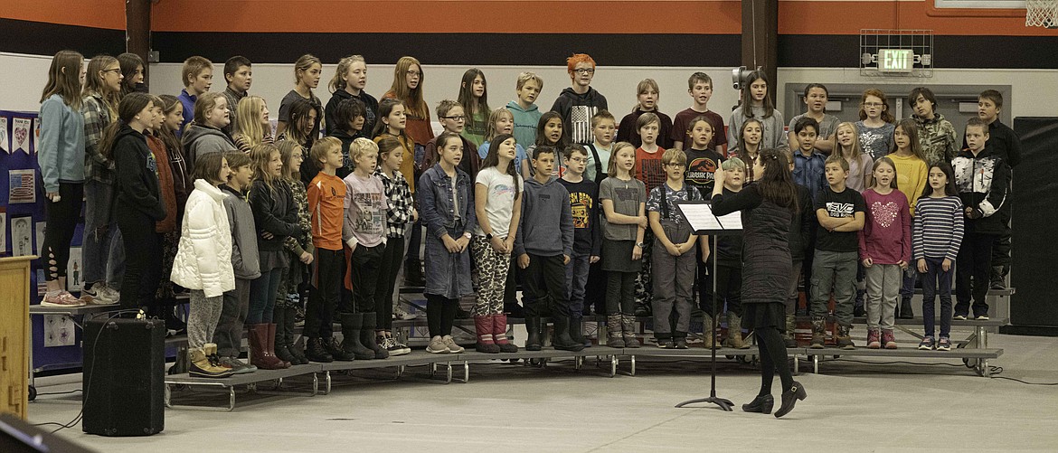 Kiara Brown thanked all veterans for their service. Makayla MacNair was a bit shy and asked Chisholm to read her essay for her. In the essay she thanked veterans for keeping citizens safe. The final essay was by Madison Hill who said, “without veterans we wouldn’t have freedom.” Following the reading of the essays the middle school choirs gave strong performances conducted by Nichole Cockrell. The 5th graders sang, Sacrifices Made. The song, Veterans We Love you, was performed by the 6th grade choir. Choir members from both grades sang the final song, American Song.