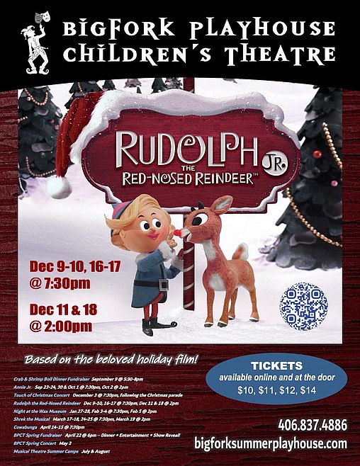 The Bigfork Playhouse Children’s Theater stages the family favorite “Rudolph the Red Nosed Reindeer” Dec. 9, 10, 11, 16, 17 and 18.