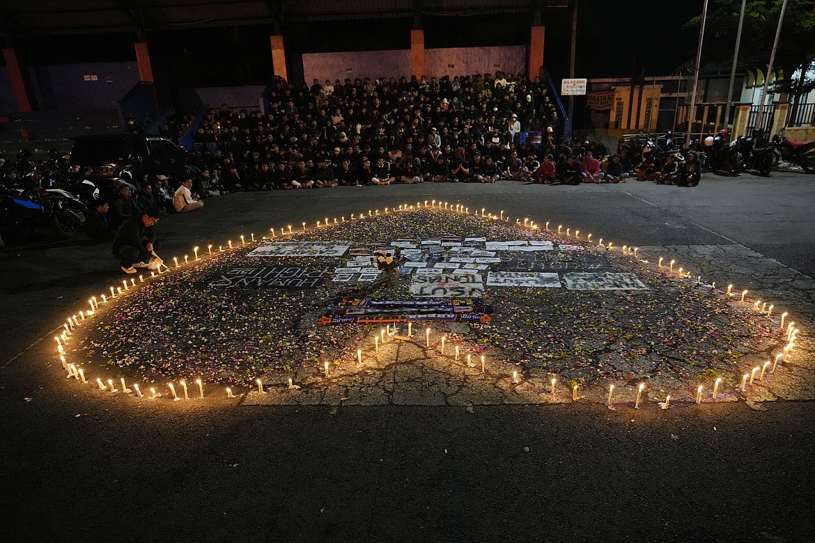 On Monday night, about a thousand soccer fans dressed in black shirts held a candlelight vigil at a soccer stadium in Jakarta’s satellite city of Bekasi to pray for the victims of the disaster.