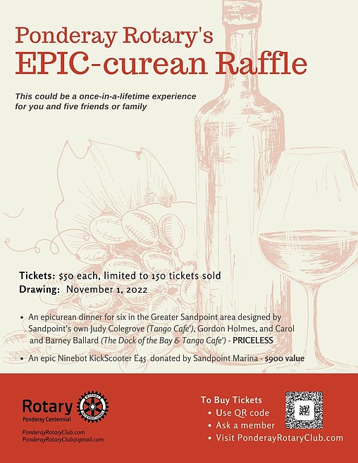 Tickets can be purchased from Ponderay Rotary members or by visiting the website ponderayrotaryclub.com. Proceeds from the fall raffle benefit the Ponderay Rotary club’s educational scholarships and community projects.