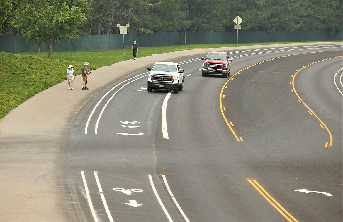 “What was wrong with what we had? Two lanes each direction, a trail lane that accommodated bikes and walkers or runners. Now we have double white lines on the east to west side; double-double white lines going east, another lane marked 'bike' away from the trail and closer to traffic, which does not appear wide enough for even two riders from different directions to pass one another."