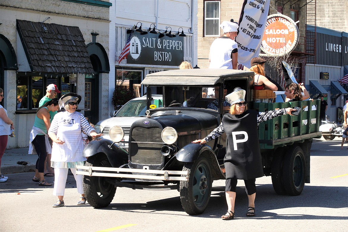 Sisters Caren Spencer and Peggy Esterly were the hit of the parade as they wore salt and pepper outfits as part of the Salt and Pepper Bistro entry, with Dave Esterly driving the classic old truck.