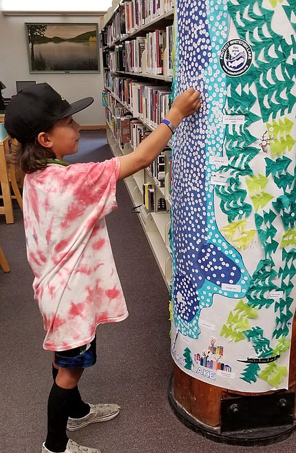 Readers taking the challenge at the library could complete a row in their reading logs and earn a Whitefish sticker to place on a mural of Whitefish Lake. Whitefish Credit Union challenged readers to place 500 stickers on the mural and earn $1 per sticker for donation to the nonprofit, Whitefish Lake Institute. Readers easily surpassed that number, placing 1,503 stickers on the mural.