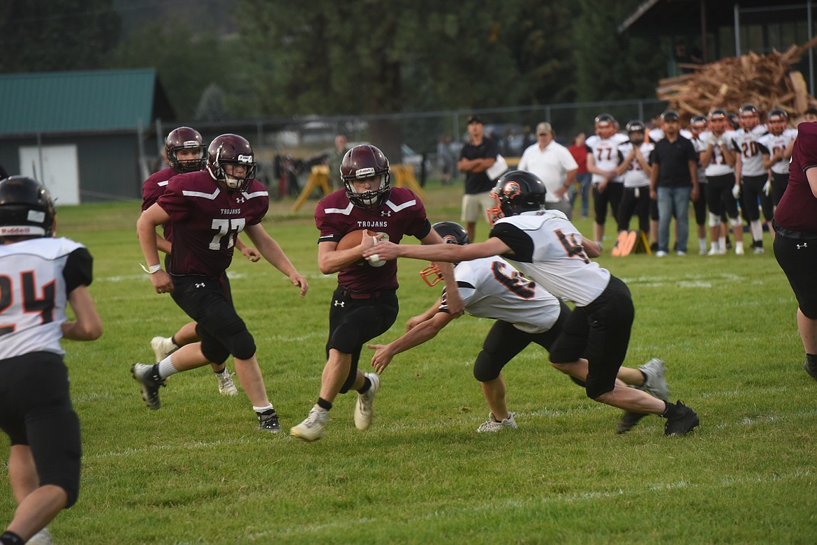 Seniors Trevor Grant and Paxton Fisher gave the Trojans (1-3) a 52-46 lead with 4:04 to play. Grant scored on a 1-yard run and Fisher’s conversion run brought Troy back from a 46-44 deficit.