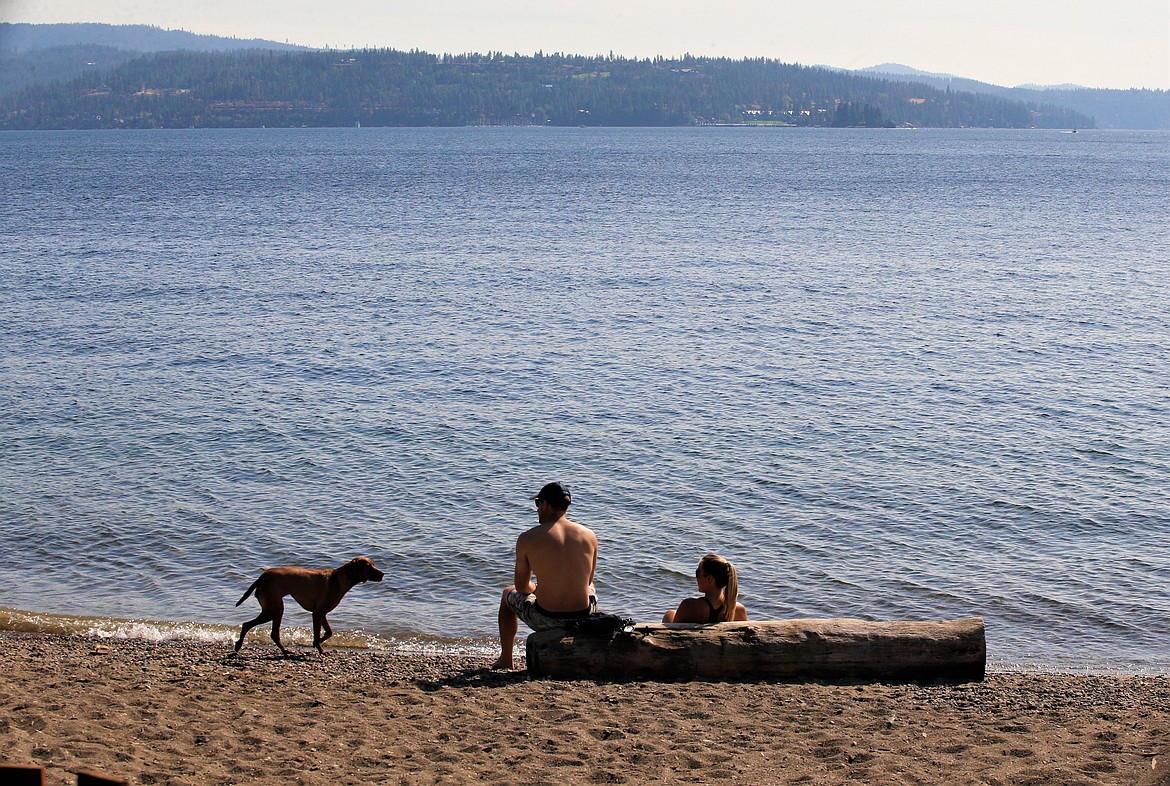 Tyler and Paige Worley had Sanders Beach nearly to themselves, looking out at the blue waters of Lake Coeur d’Alene as they sat on the shoreline.