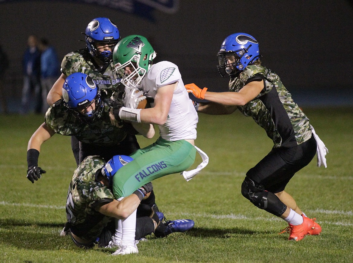 Coeur d’Alene had just 76 yards off offense in the first half, but finished with 300. Woodinville had 276 yards, but only 40 on the ground, and just 8 at the half. The Falcons punted seven times, and their only offensive score came against backups.