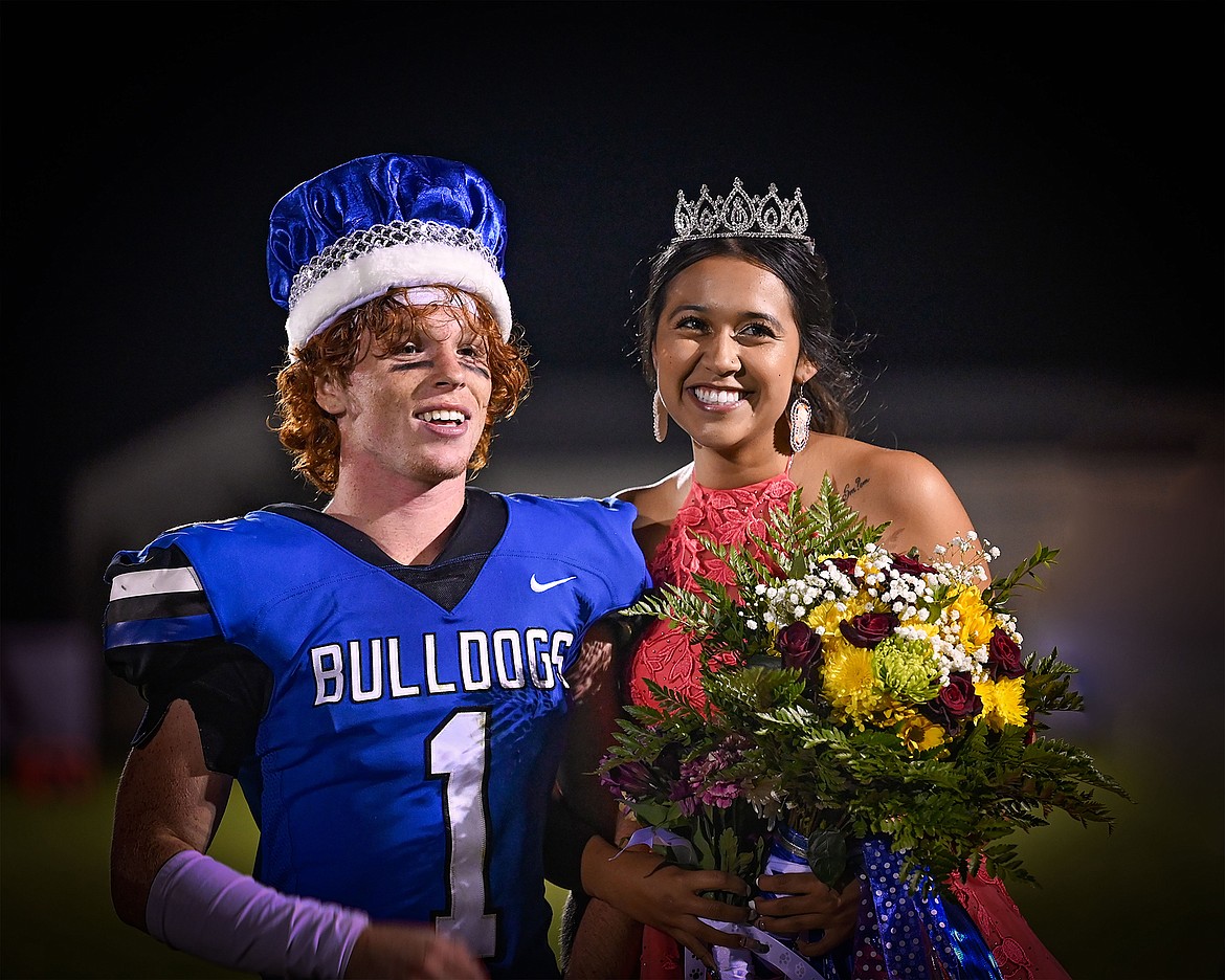 During halftime, Bryce Umphrey and Kooper Page were crowned 2022 homecoming king and queen. The homecoming court consisted of freshmen class nominated Cedar Hunt and Andrew Rush. The sophomore class chose Kooper Page and Bryce Umphrey. The junior class selected Cassidy Orr and Canyon Sargent, and the senior class voted for Lanie Keast and Matt Waters.