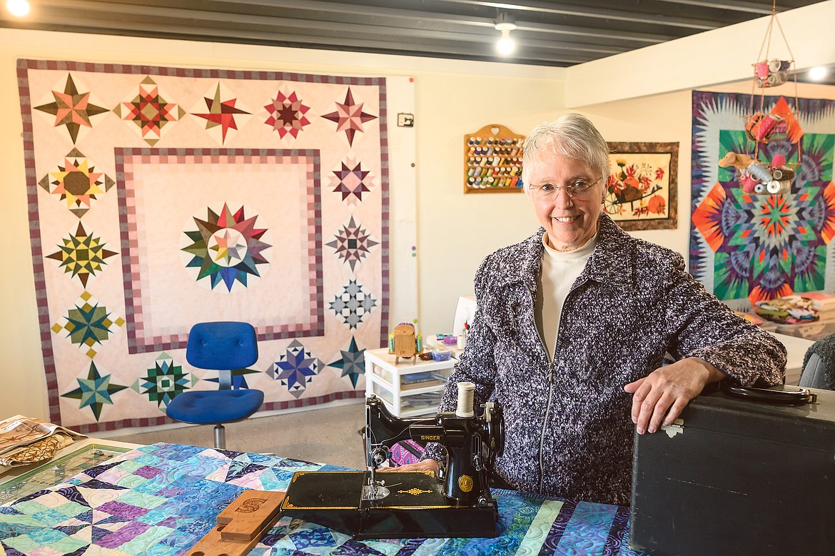 She’s been quilting ever since and today the daylight basement of her Kalispell home is a quilter’s haven, complete with various sewing machines and tables and even a long arm machine — a rather large sewing machine that’s designed to sew patterns into large quilts.