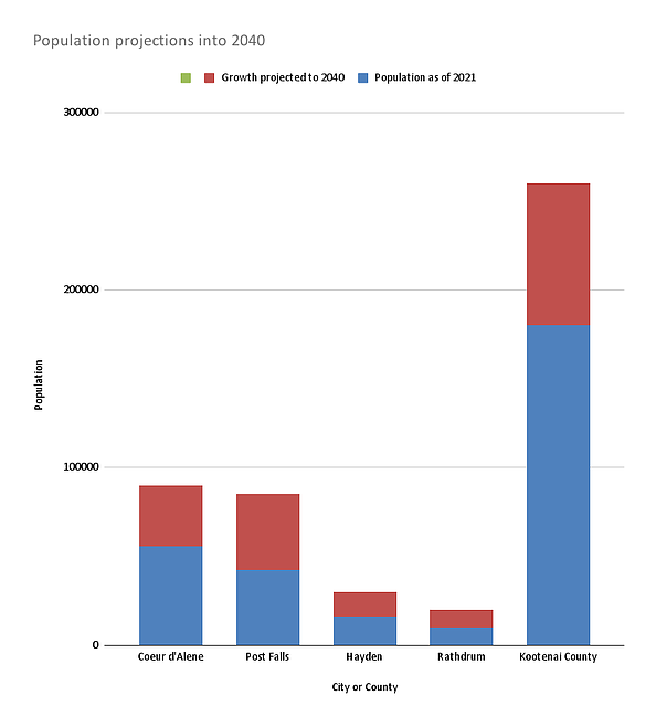 Coeur d’Alene, Post Falls, Hayden and Rathdrum each use a comprehensive plan as a guiding document for city planning that projects population growth into 2040. Each city has a vision for how the city will grow based on those numbers and the plan is used for things like construction priorities and to guide approvals for developments or zone changes.