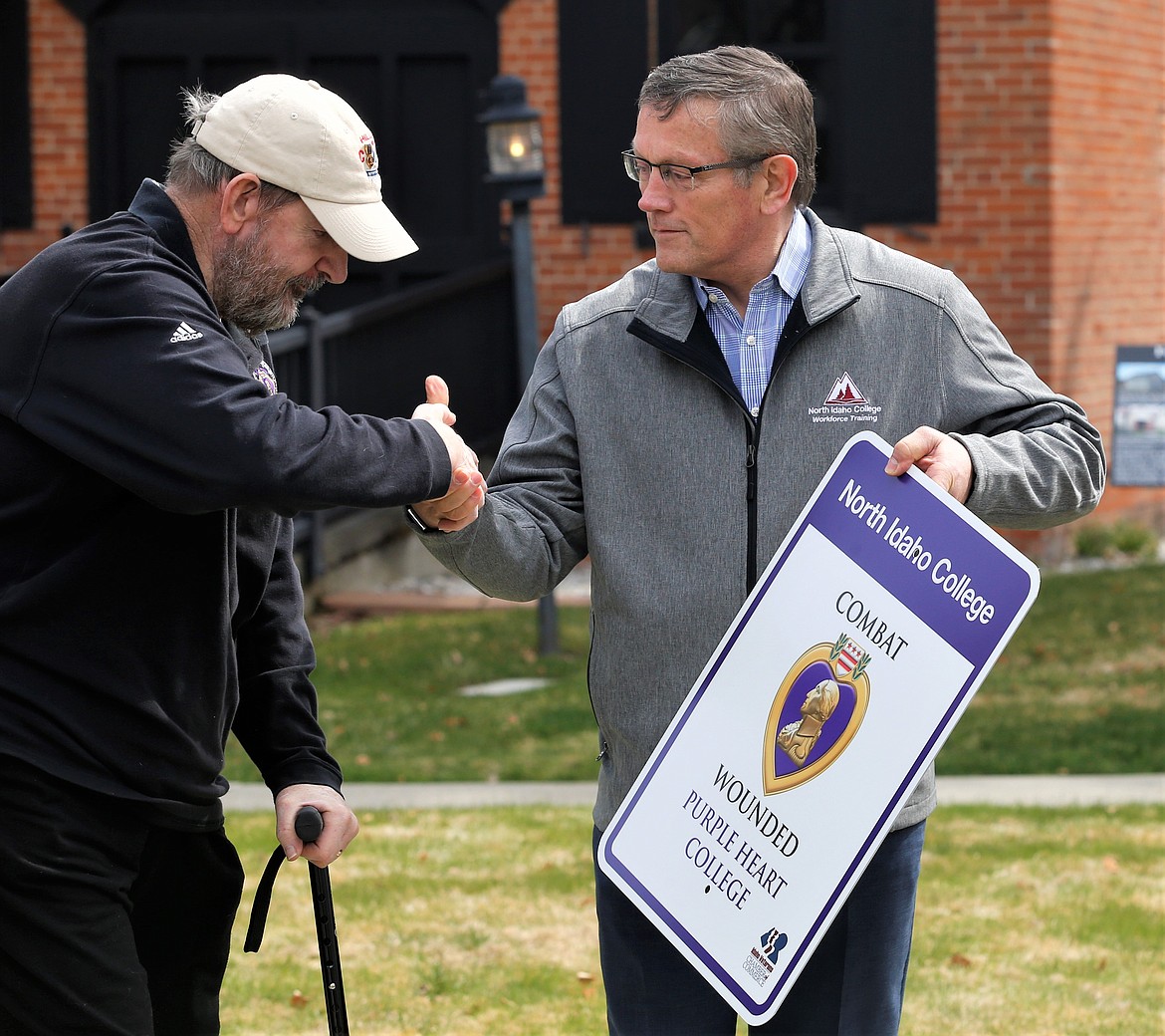 It was fitting, then, that they were part of the ceremony Wednesday as North Idaho College was designated a Purple Heart College, and became a “critical part of promoting the importance of the Purple Heart award and all that it means.”