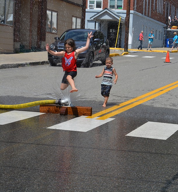 Firefighters opened a hydrant to keep spectators and participants cool as the temperature rose Saturday, and more than a few kids and adults made a run through the sprinklers on the blocked off street.