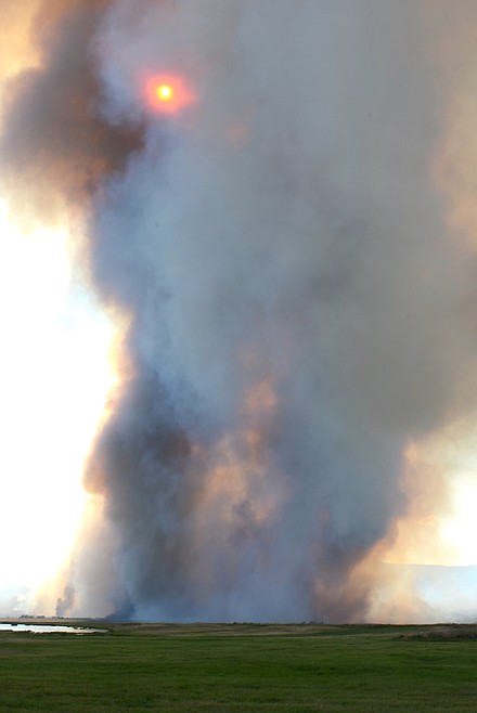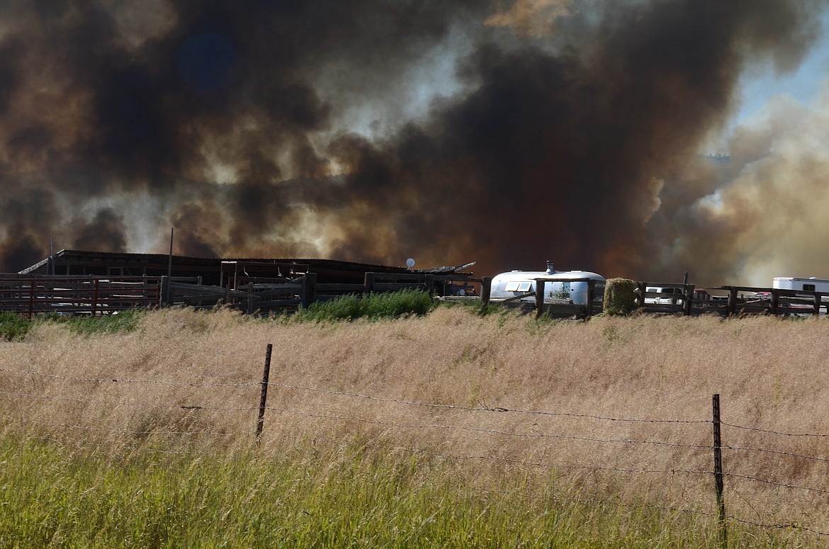 Smoke billowed behind the Bison Range, forcing managers to close the gates and evacuate visitors. West of Round Butte a giant plume of black smoke boiled up from the Flathead River as the fire leapt across and raced through hayfields and sagebrush, threatening homes, farms and livestock. Hwy. 28 between Elmo and Niarada was closed Sunday after fire jumped across the roadway and sped north.