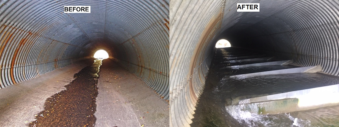 One barrier was a 170-foot-long culvert on Big Meadow Creek, a tributary to the lower Potlatch River. Because of how the culvert was designed, flows were too low in the summer and too high in the spring to allow fish to move upstream. Fish upstream of the culvert were thought to have been isolated since the early 1970s, so the Idaho Department of Fish and Game modified the culvert in 2018 by installing baffles along the bottom. This slowed flows in the spring and retained water in the summer, making it possible for steelhead to access an additional 10 miles of stream habitat.