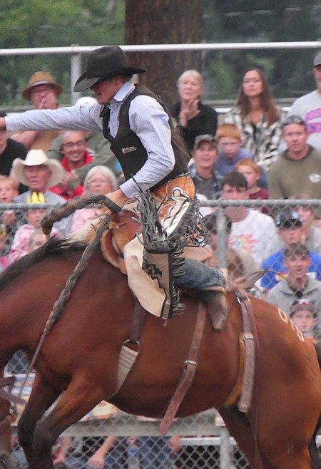 For hometown fans, saddle bronc rider Hunter Haskins, who attended Superior High and was a basketball standout, put together the top ride of the competition, netting a 75 score Saturday to edge out Libby’s Jason Colelough, who recorded a 73.