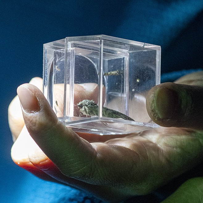 About 35 participants came to enjoy the Nocturnal Pollinator BioBlitz, a collaboration between Montana Moth Project and Glacier National Park Citizen Science Program, which allowed participants to capture and identify specimen with the help of experts. Stretched white sheets caught nocturnal insects dazed by the lights, and citizen scientists collected them in observation cubes to learn what they were and ultimately help document where they were.