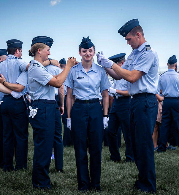 The new cadet is once again alongside her childhood friend at the Air Force Academy.