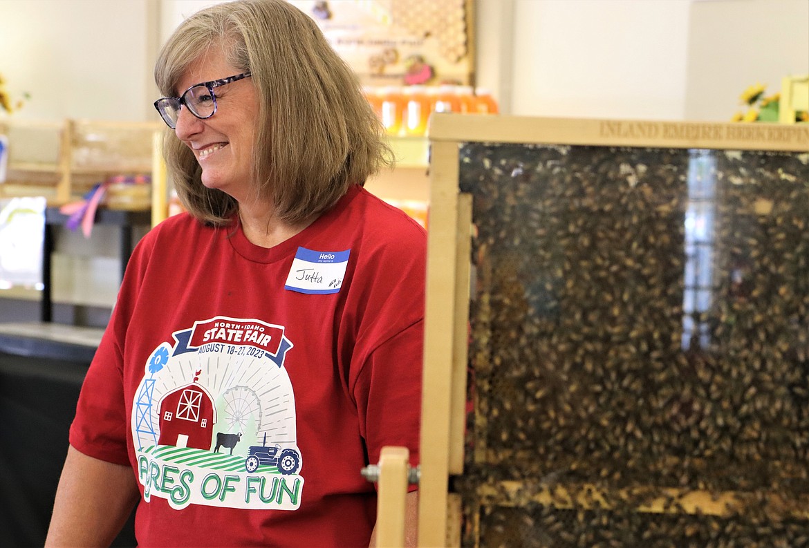 COEUR d’ALENE — Kelli Austin quickly greeted two guests who stopped to look at the glass case filled with honeybees.