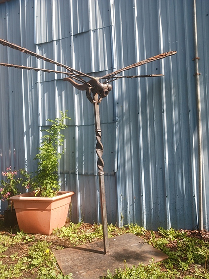 “Dragonfly” by Holly Burk, $2,000. Burk grew up in Rathdrum. The sculpture is about 5 feet tall. The wings are a delicate mosaic pattern. The body is a vintage cast iron water spout handle. It's welded and brazed for additional strength.