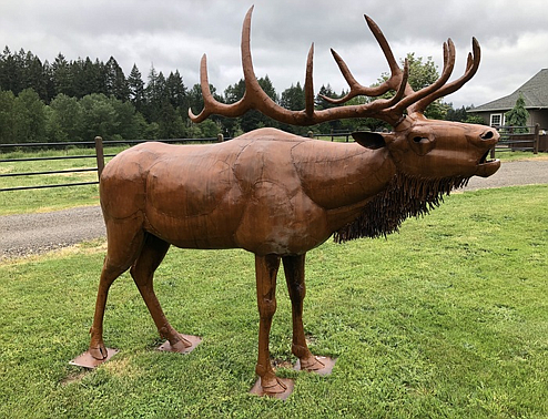 “Selkirk Mountains Monarch” by Jason Paul, $15,000. He said the piece was inspired “by one of the most regal symbols within North America, the majestic Rocky Mountain Elk. The life-size scale replica stands about 8 feet high.
